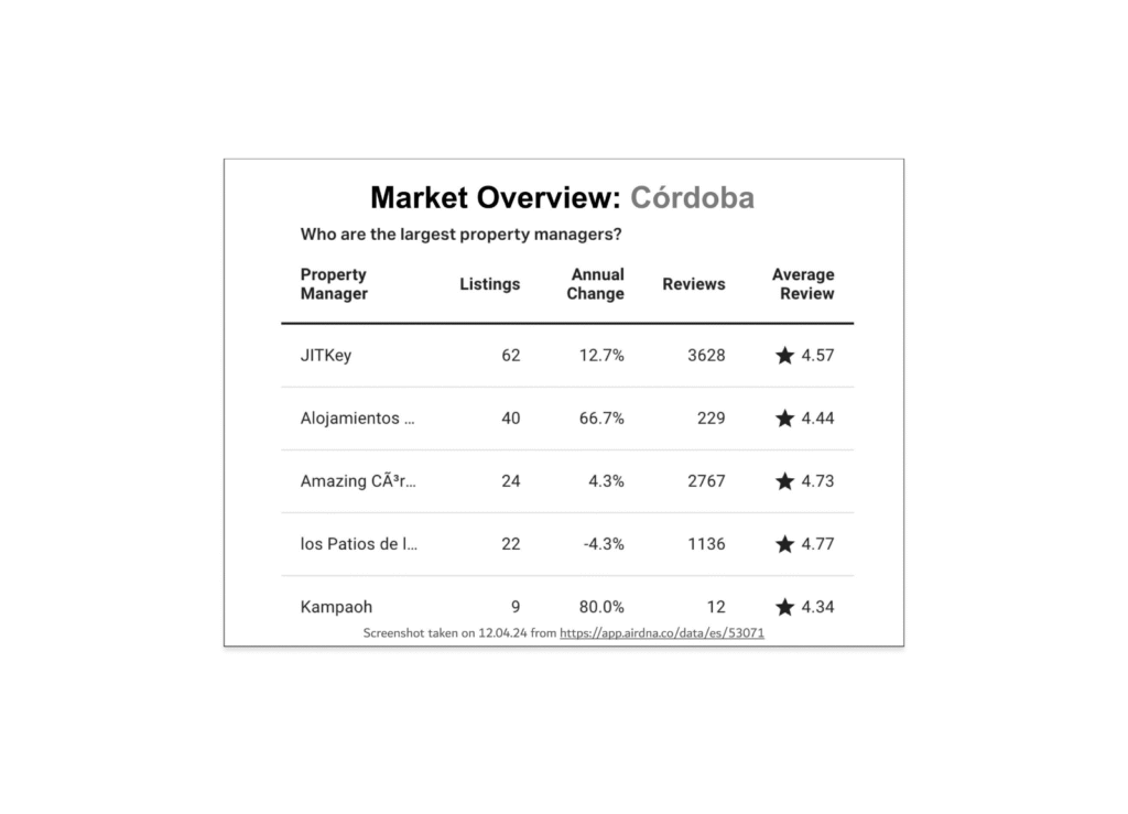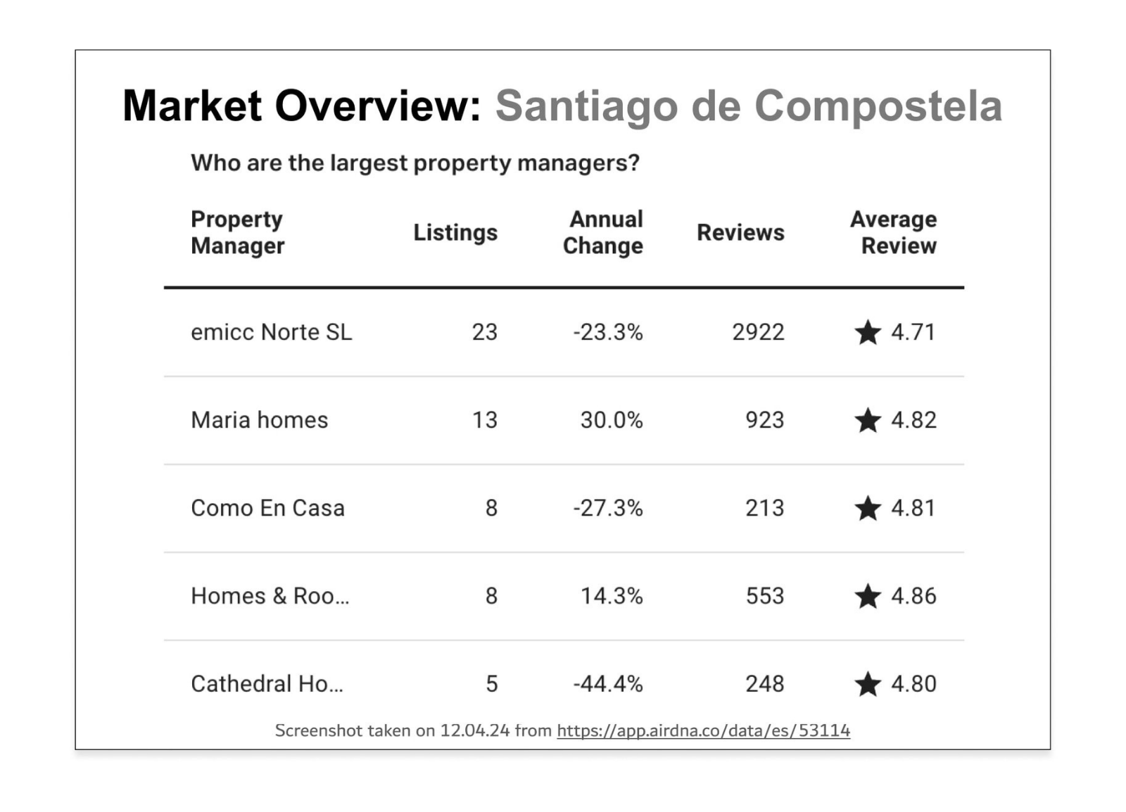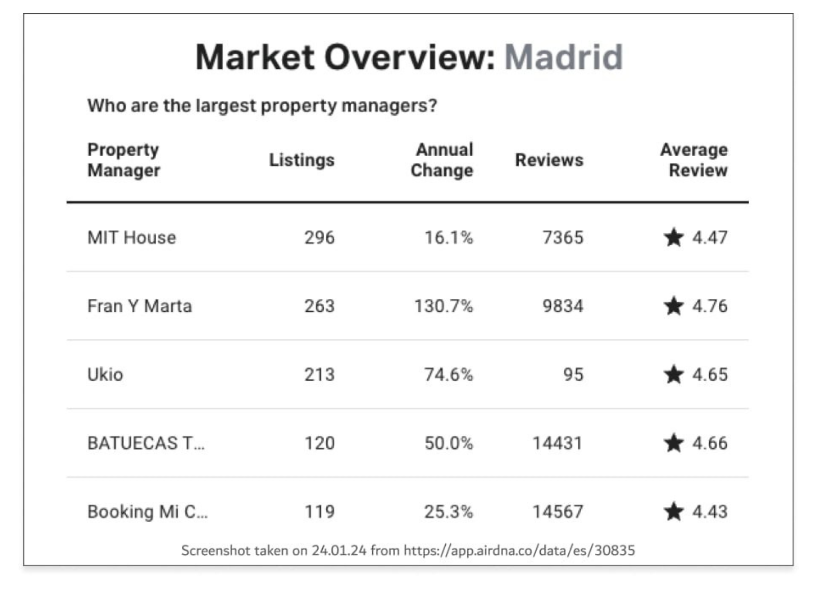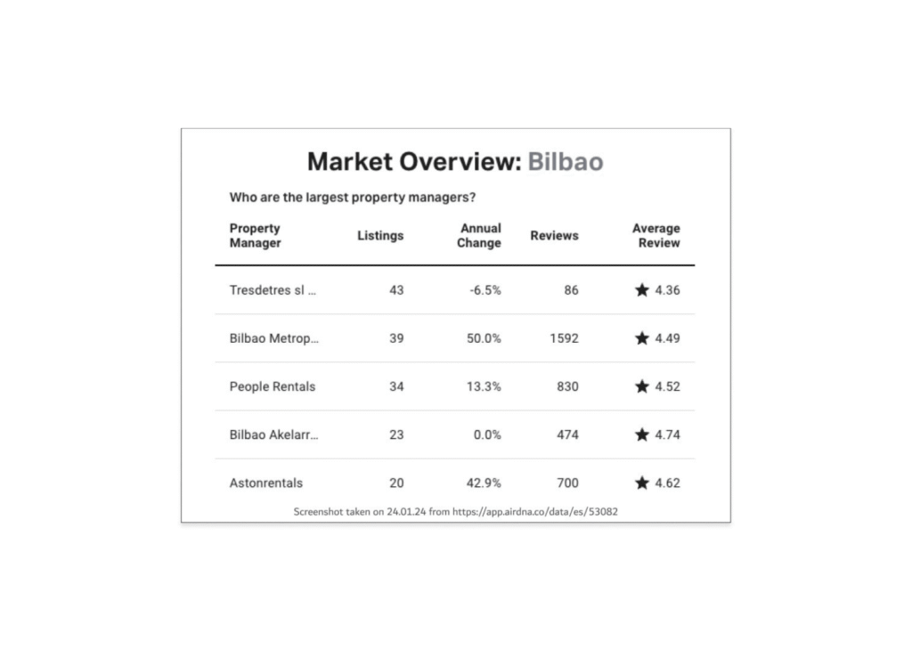 Comparative study of the 100 largest Airbnb & VRBO hosts in Spain’s 20 main tourist cities in January 2024. Our rating is the highest among the hosts with 50+ listings and 1000+ reviews.